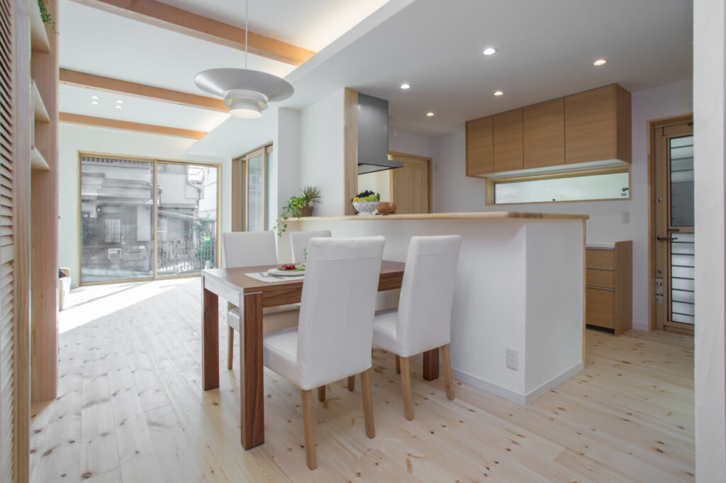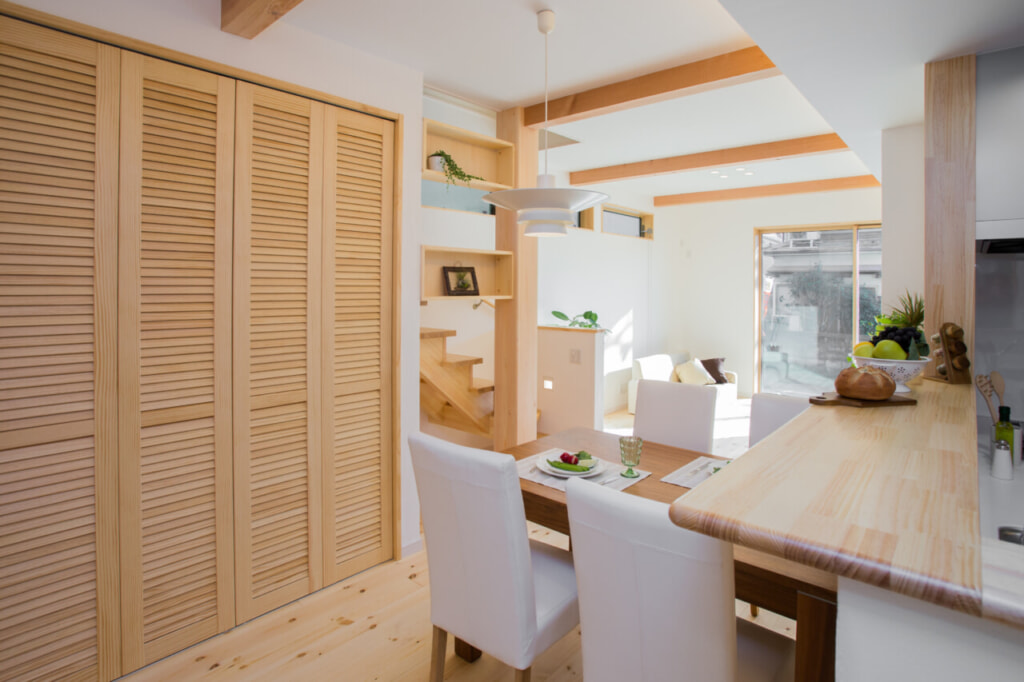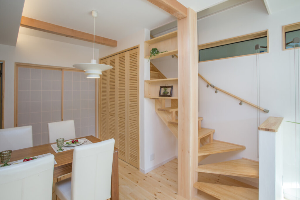 ホーム » 施工事例 » 邸別 » 高槻市の注文住宅|木の癒しを感じられる漆喰とヒノキの家