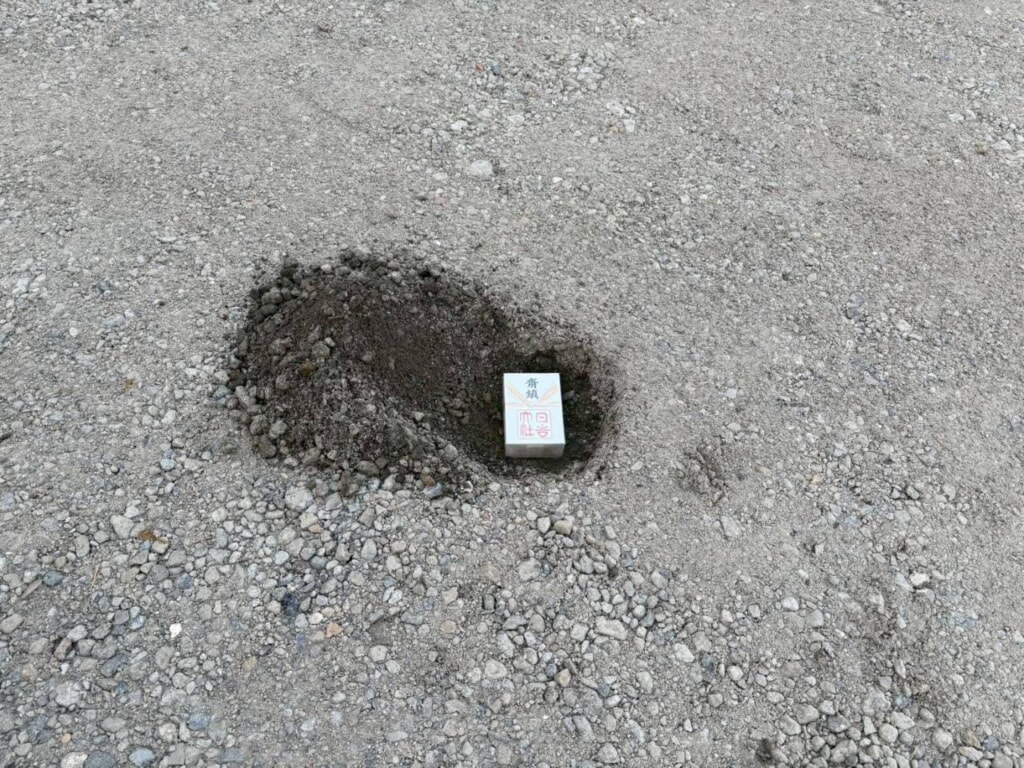 建築の大切な儀式である「鎮め物」も、この日にしっかりと家の中心に納めました。これは土地の神様に工事の安全と、これから暮らすご家族の繁栄を祈るためのもの。建物が完成するとまったく見えなくなる部分ですが、家づくりにおける大切な節目の一つでもあります。