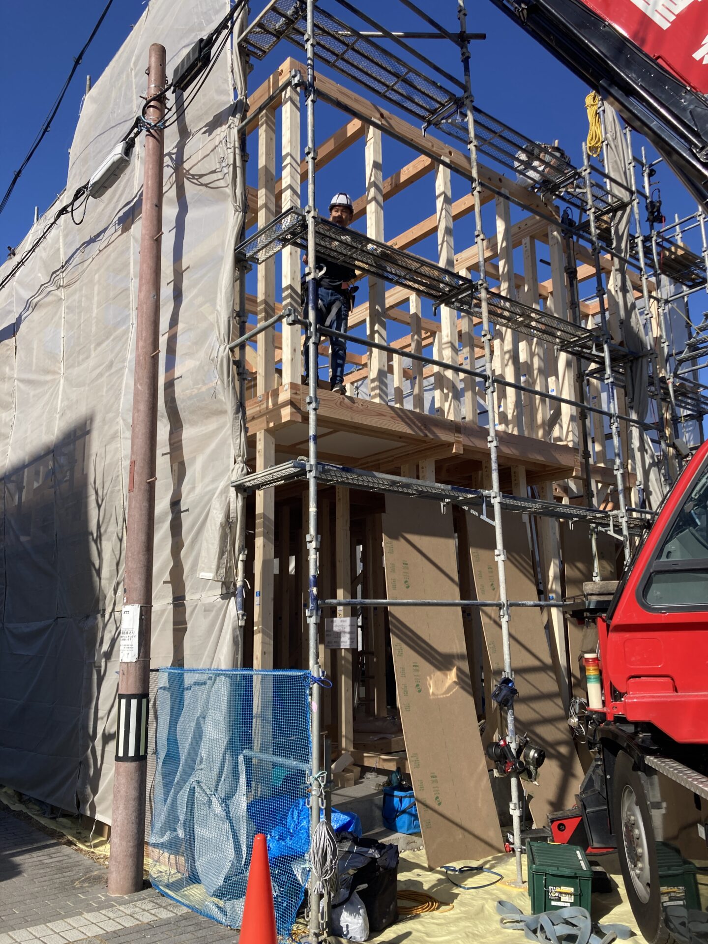 今回は、滋賀県大津市で新築中のお住まいにて、棟上げ(上棟)を行いました。