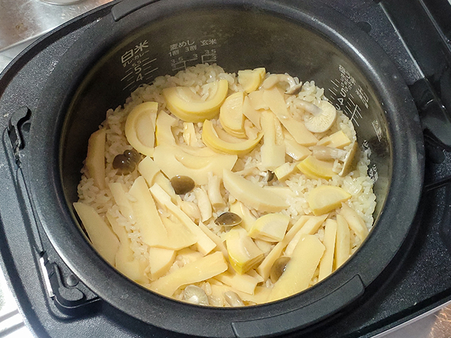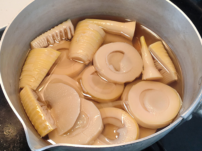 以前は「米ぬかは筍に直接触れていないといけない」と思い込んでいたのですが、調べてみると、米ぬかに含まれる成分がえぐみの原因に働きかけることが重要で、必ずしも米ぬかを鍋の中にそのまま散らす必要はなかったそうな。
