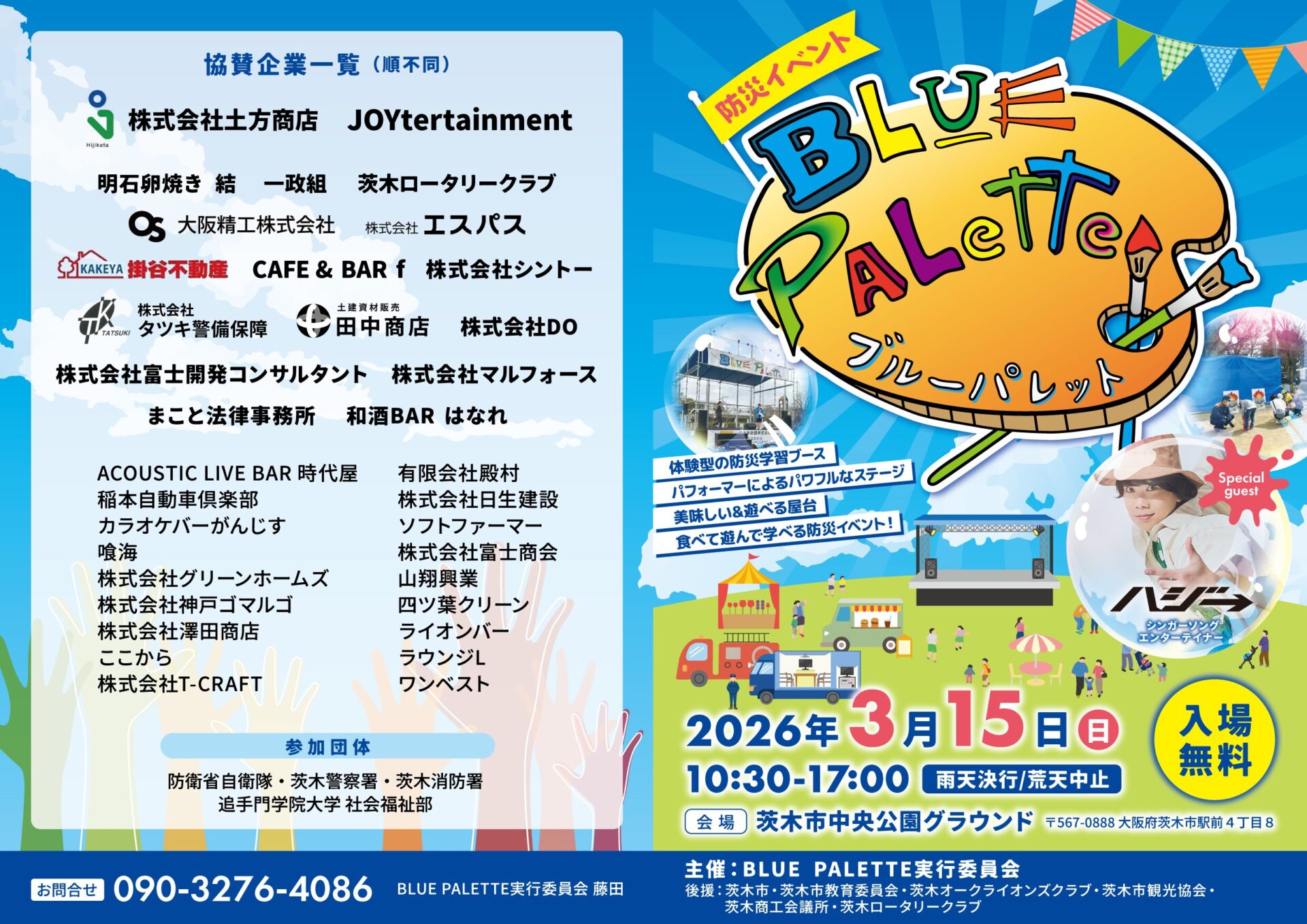 この防災イベント【ブルーパレット】というのは、東日本大震災をきっかけに始まった復興支援チャリティと、茨木市民に向けた防災を掛け合わせたイベント。