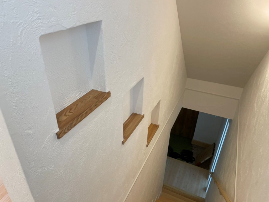 デメリットで言うと、ニッチを作れば作るほど、飾り棚が増えるという意味でもあるので、ホコリ等お掃除の手間は余分に必要になっていきます。