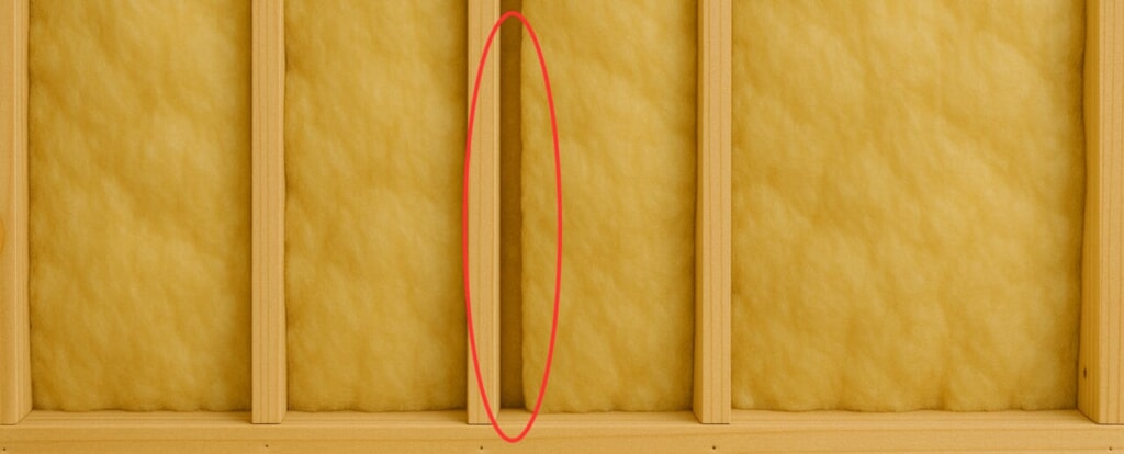 断熱欠損というのは、本来きっちりスキマなく埋めなければならない断熱材の工事で、施工不良によってスキマが発生してしまっているもののことを言います。