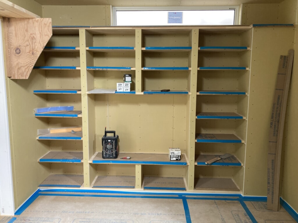 エッグ住まいる工房では、大工工事が完了したタイミングで、設計担当と工務担当が現場に入り、図面通りに施工されているか、寸法や位置関係、納まりなどを丁寧にチェックします。現場の大工さんとの打ち合わせも行い、図面では表現しきれない細部の納まりや、お施主様のこだわり部分についてもしっかりと確認を重ねます。