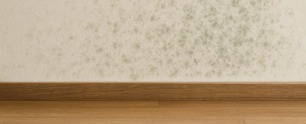 画像のように「壁紙にうっすらカビが生えてる!」ということが発覚して、これが室内の湿気が原因で発生したものならまだいいのですが、壁内部がカビまみれになっていて、それがおもてに出てきたような場合は最悪です。