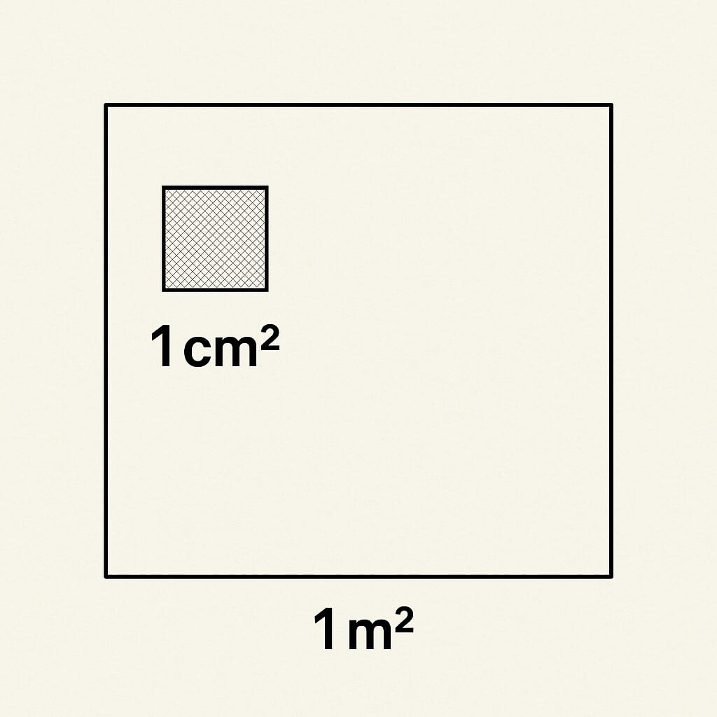 1㎠/㎡ の場合、1平方メートルの壁に対し、1平方センチメートルの隙間があるよ。となるわけです。