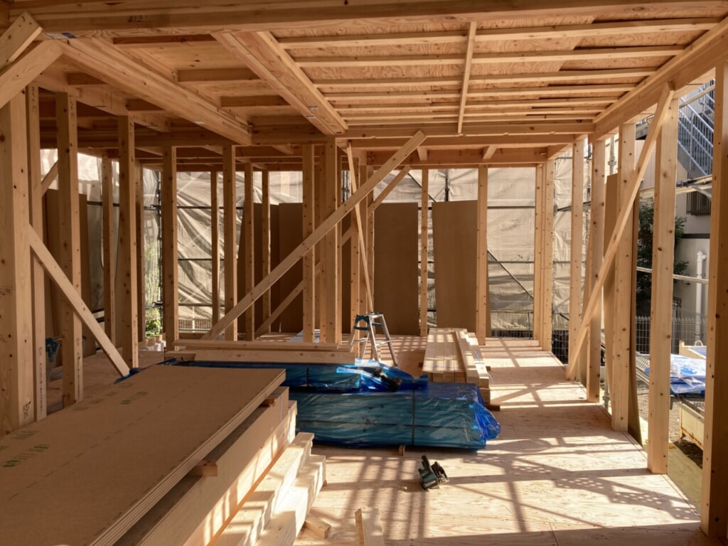 大阪市都島区のお住まいも、職人の手によってしっかりと骨組みが組み上がり、ここから本格的に内部工事がスタートします。