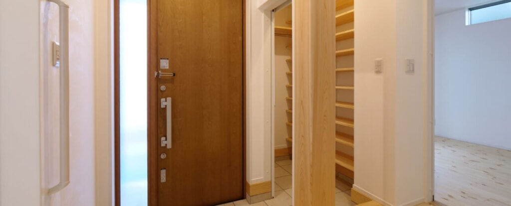 ・収納棚やキャビネットが玄関から見えないため、すっきりとした空間を作ることができる。