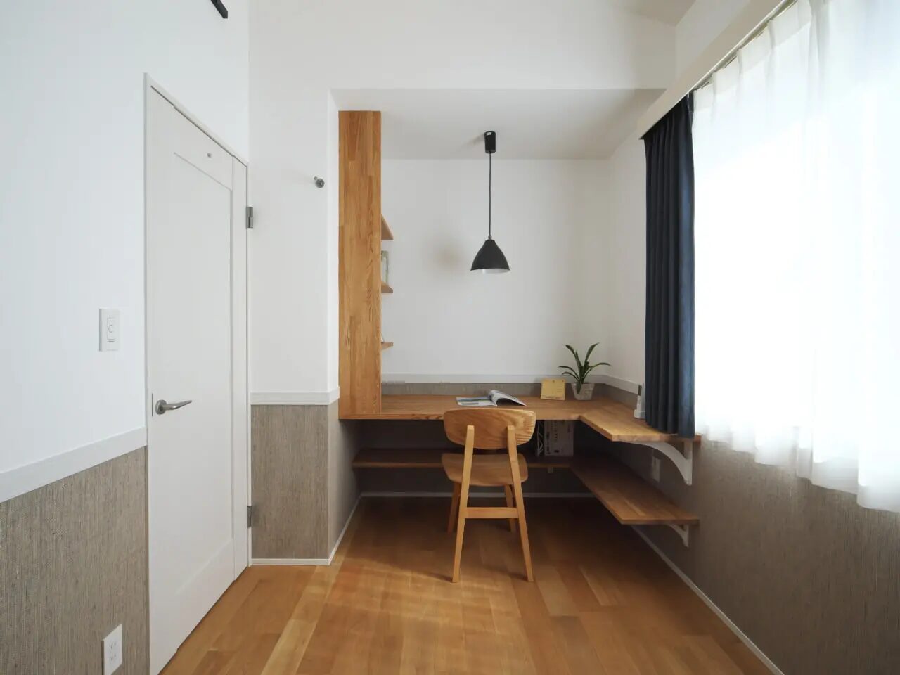 ご主人様の個室は1階の玄関からすぐに入ることのできる動線で設置。必要十分な広さを綿密な打ち合わせで決めました。