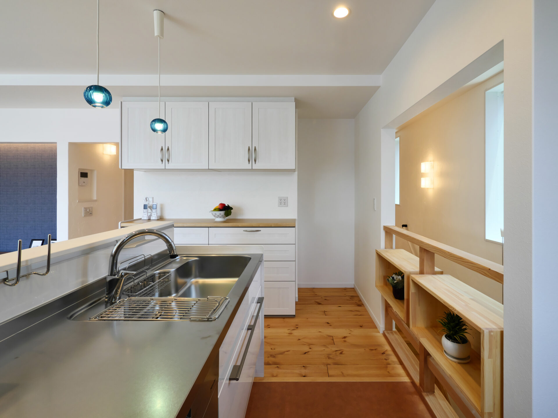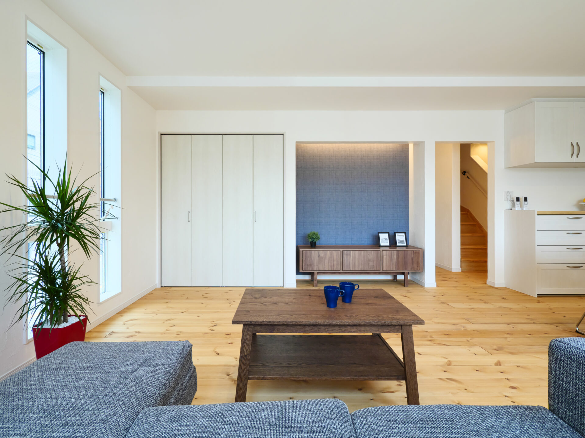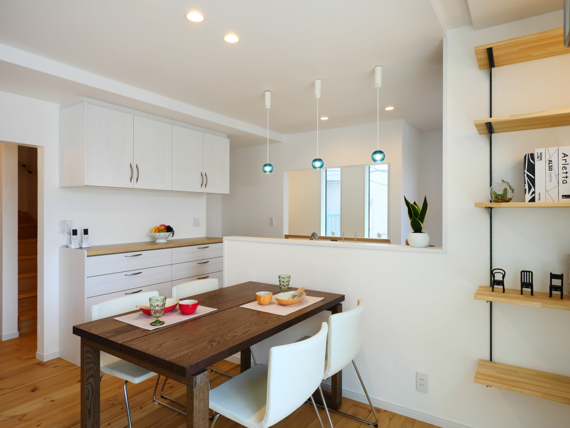 住空間は2階リビングの広々LDKとし、自然素材を取り入れて心地よい空気感に。仕事と暮らしを無理なく両立できる、快適な店舗併用住宅です。