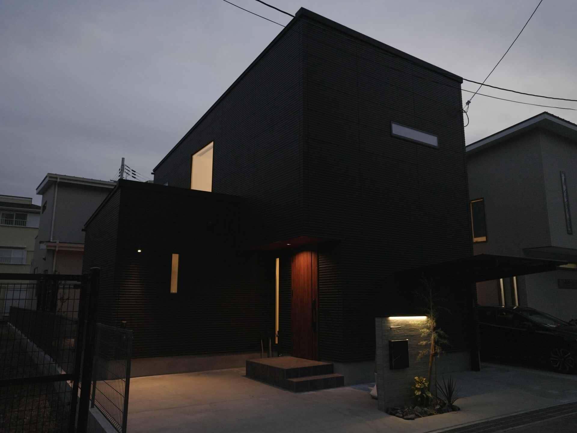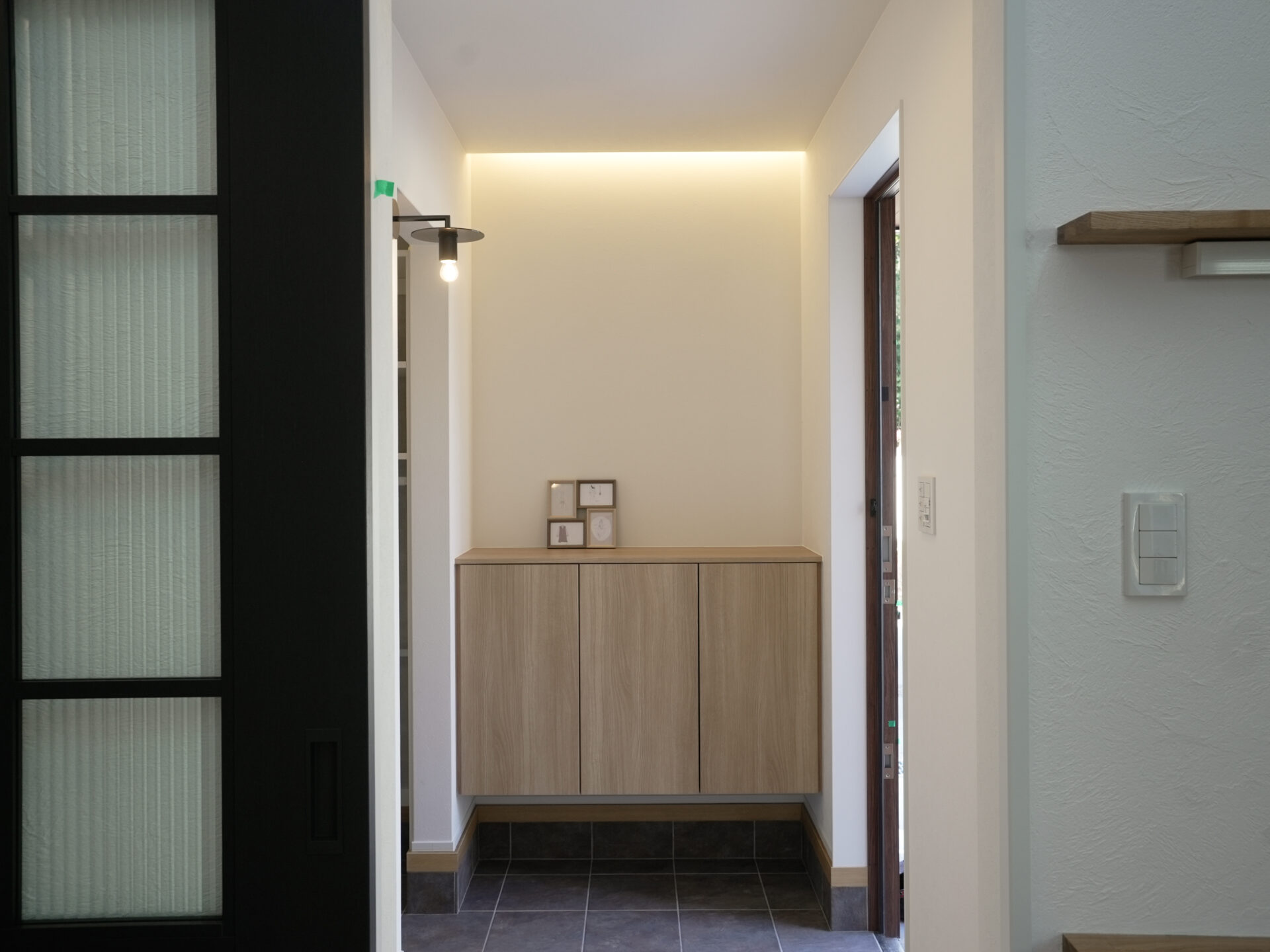 島本町の注文住宅|玄関まわりの回遊動線が便利な家|家族用と来客用を分けた二つの玄関