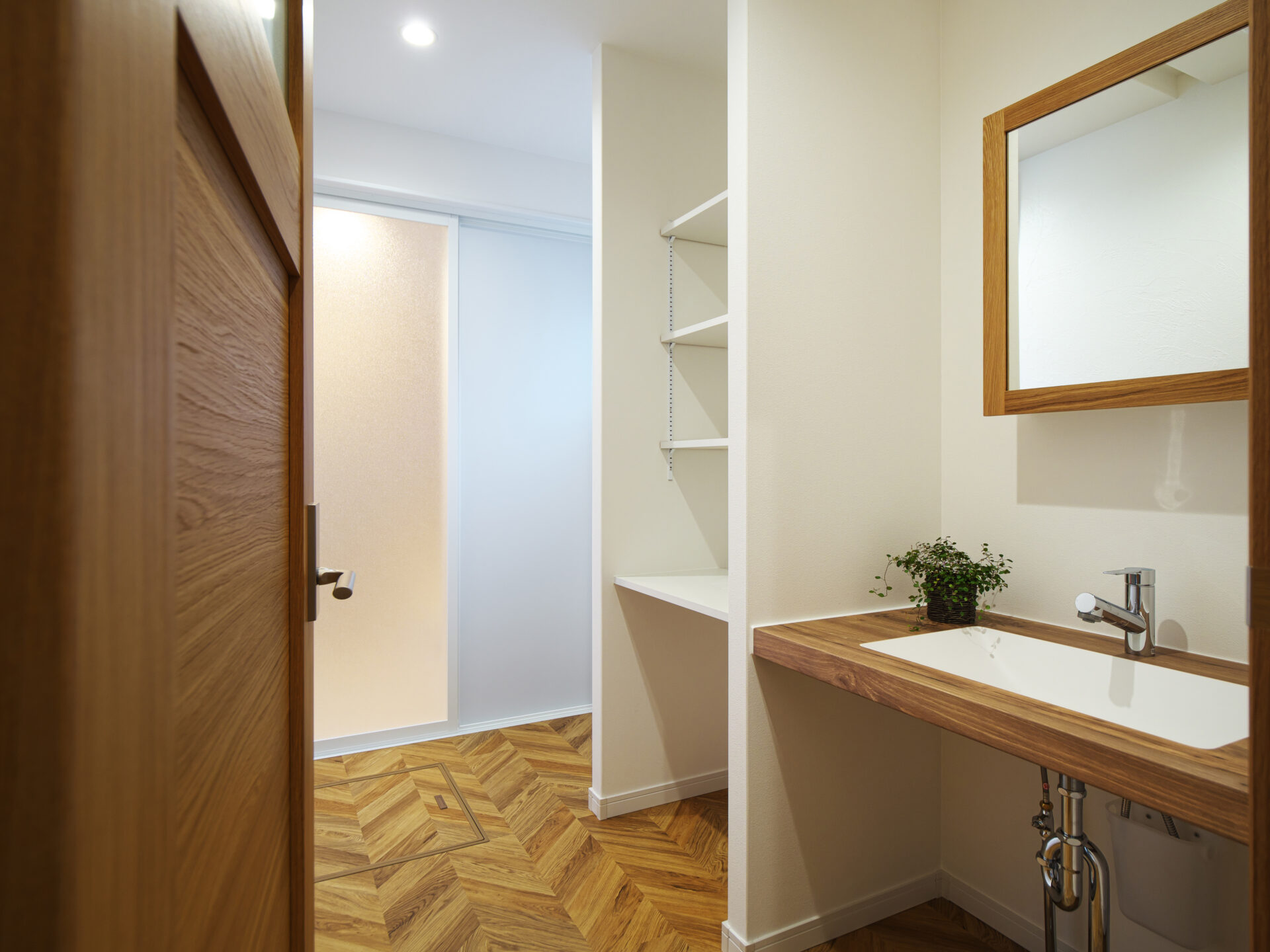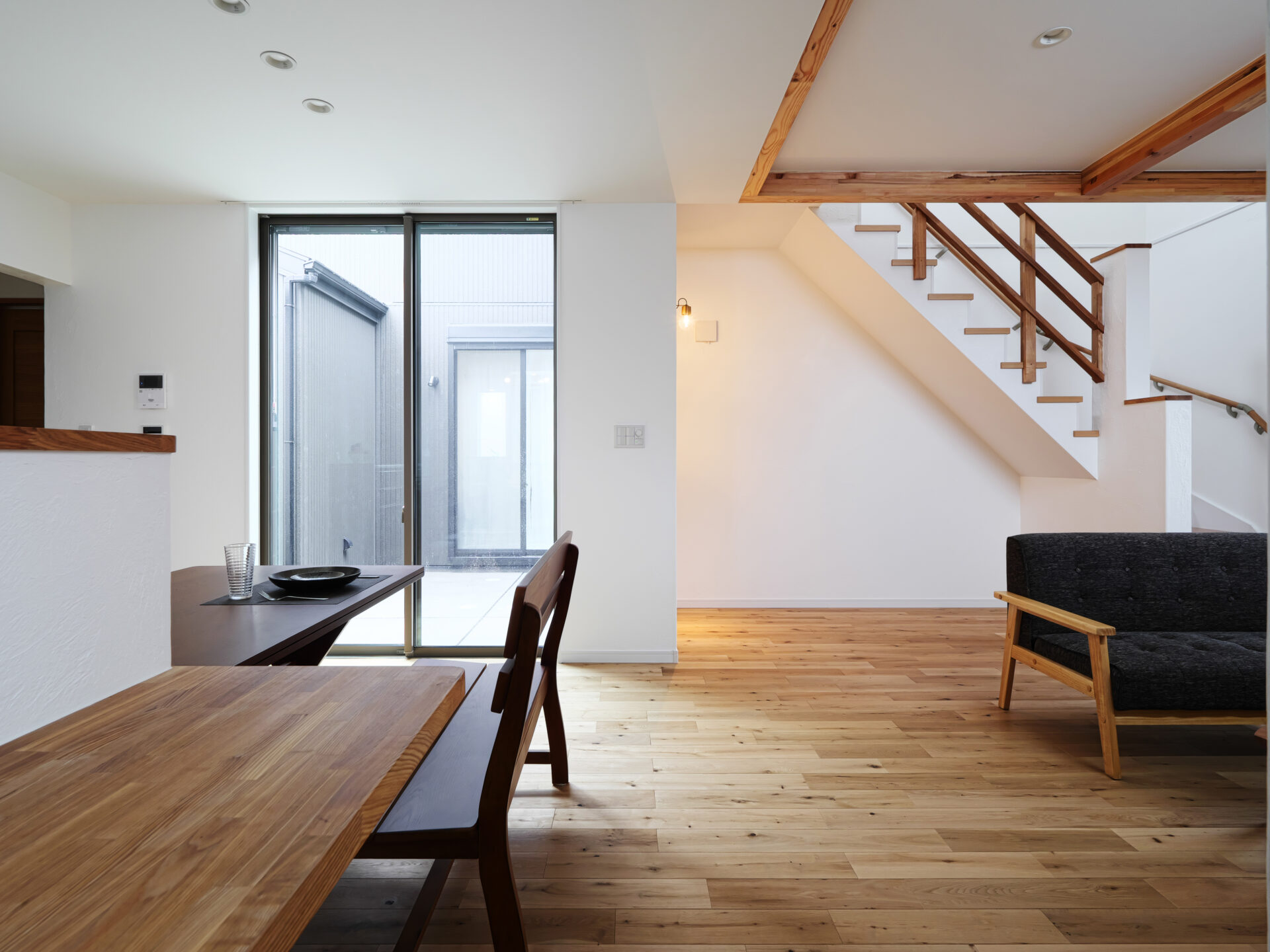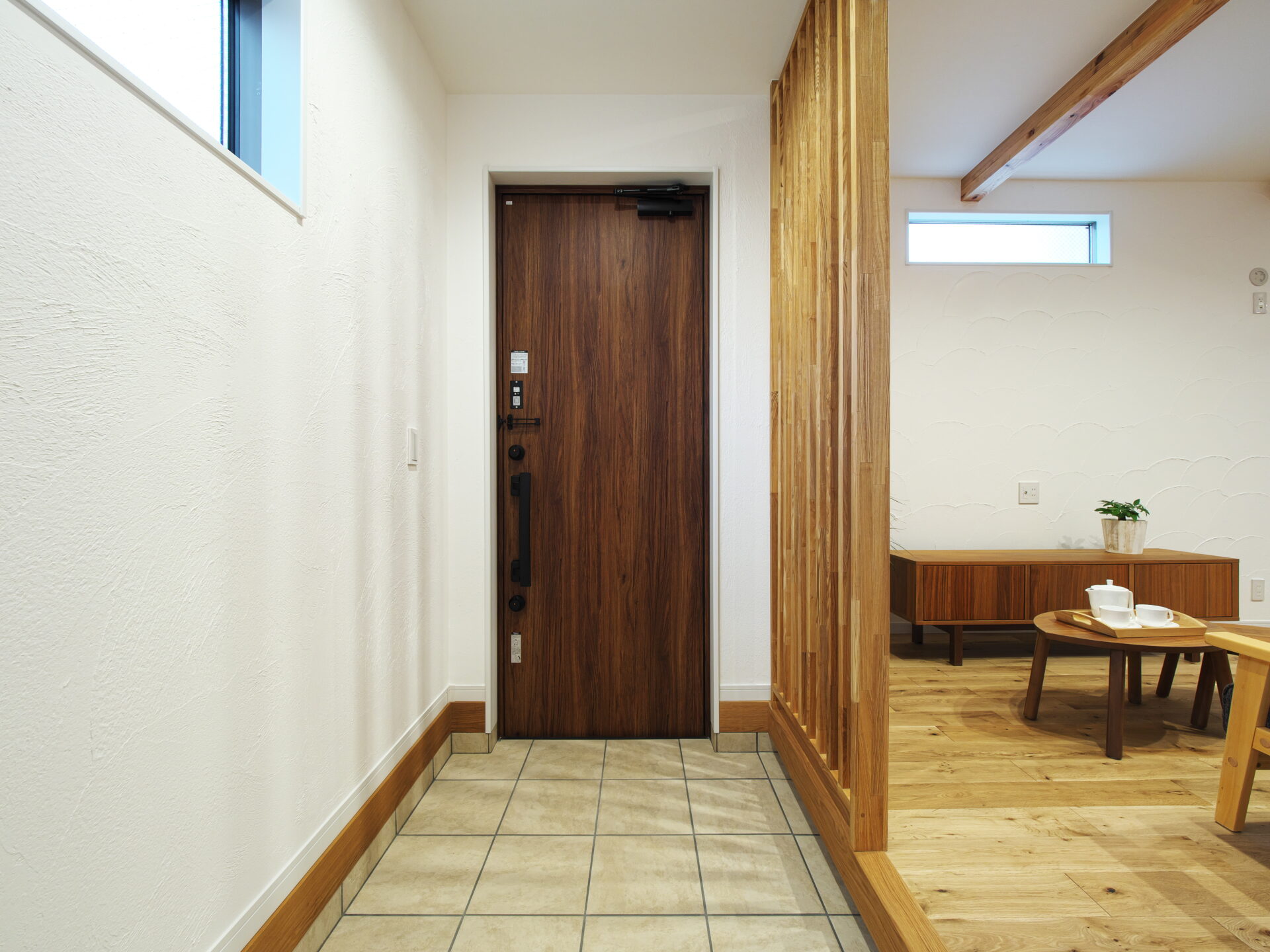 茨木市の注文住宅|玄関ホールを無くして開放感を手に入れた家|無垢オークのフローリング