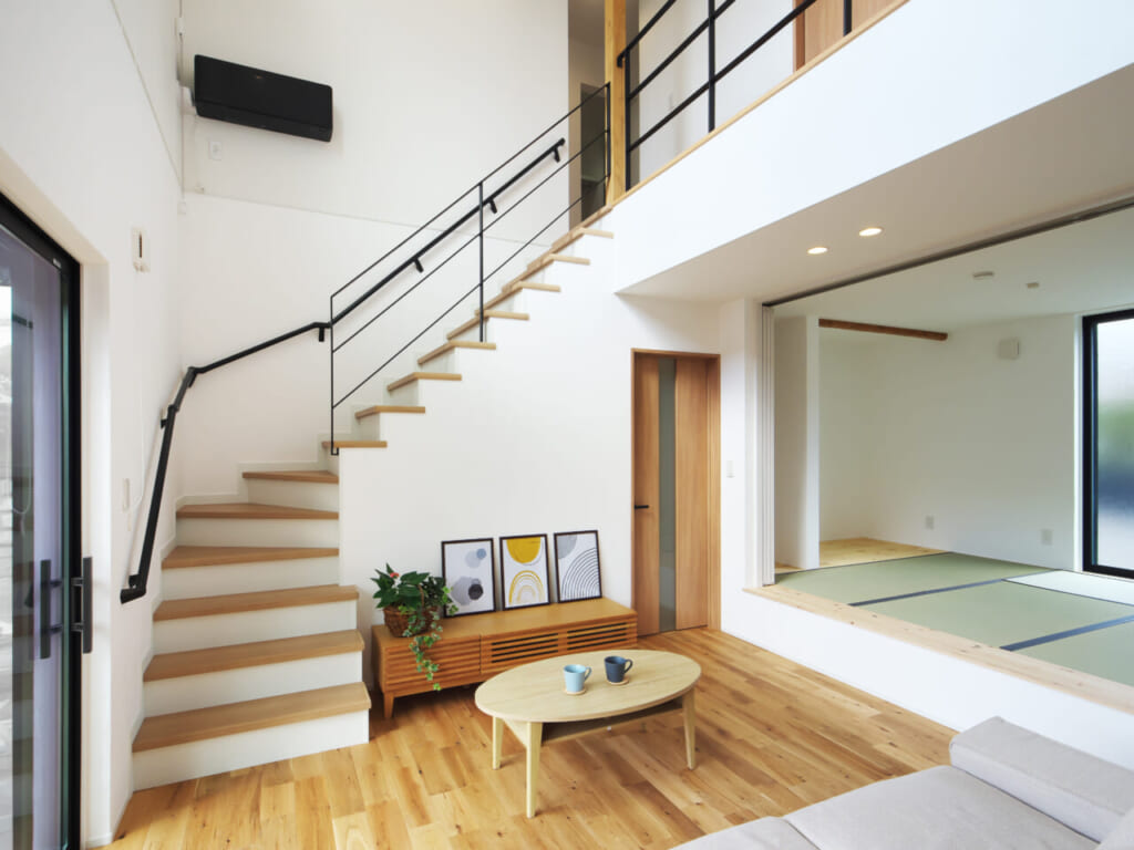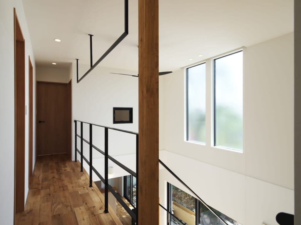 大きな吹き抜けを堪能しながら上がるオープン階段は、家族の息遣いが感じられる間取りになっています。