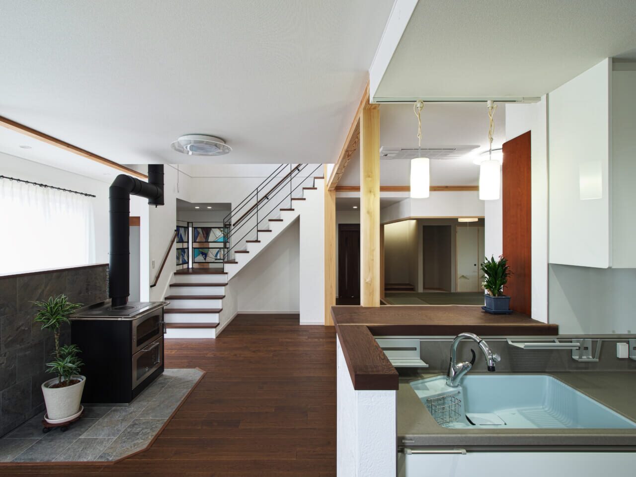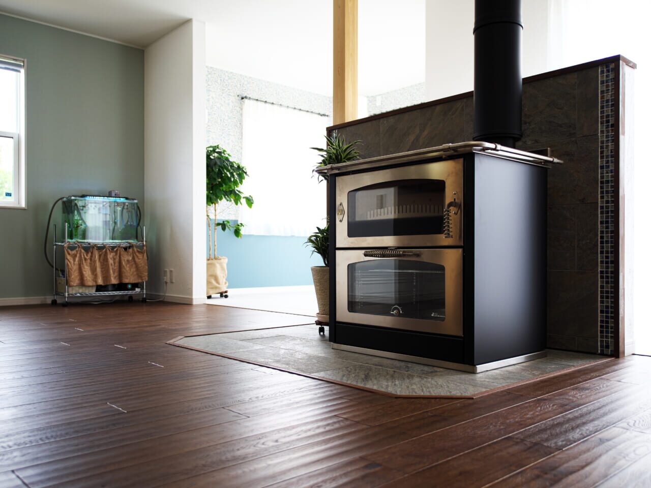 茨木市の注文住宅|薪ストーブを眺め、自然を肌で感じる。スローライフ|無垢のフローリング