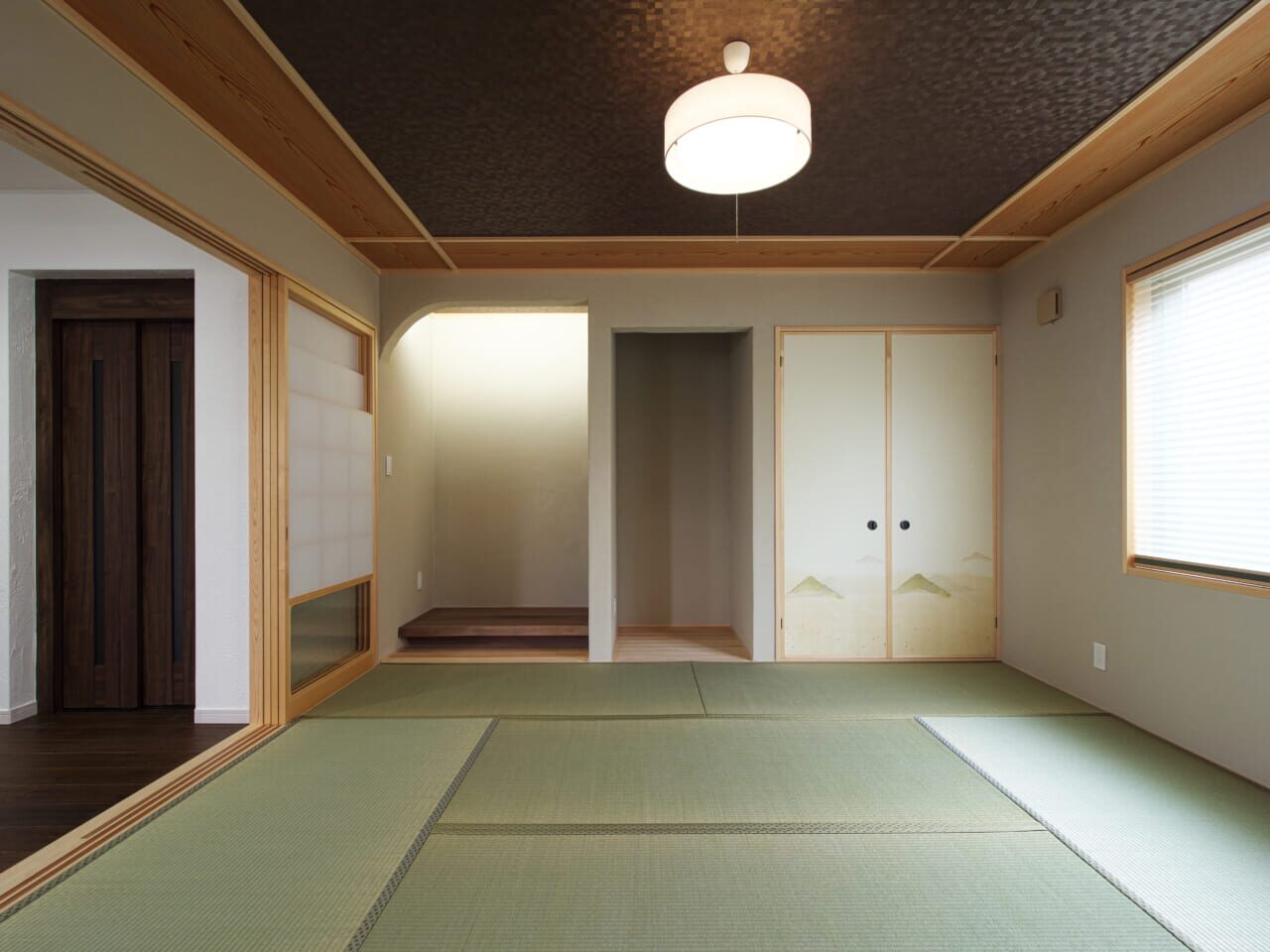 あらかじめ仏壇を置くことが決まっていたこのお住まいでは、和室にも少しゆとりの広さが必要でした。法事のために親族を招くこともあるこちらのお住まいでは、この和室の空間は客間も兼ねることとなりました。ただ常設的に必要な部屋ではないことから、普段扉は開け放つことを想定して作っています。