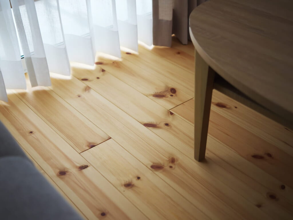 採用された無垢の赤松材(パイン)は足触りが柔らかく、冬にもあまり冷たくならない特性を持ちます